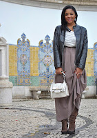 I see this skirt around me in about 20 years, being used by my grandmother. And I remember when i was a toddler, that everytime she used it, I would be enchanted with the way the skirt would move around her, with its endless stripes. So I borrowed it! I decided to wear it with a red blazer, just having underneath it a brassiere (aka Bra)! It would not be an appropriate outfit to use everywhere, but to walk around, meet friends, do some shopping, it's ok, and definitely not a boring attire.